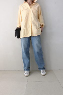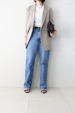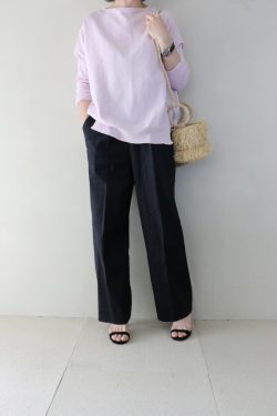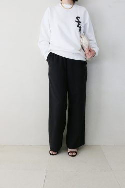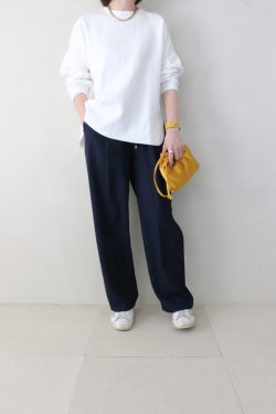 モノトーンのボーダー柄が目を惹くカーディガンに、しなやかな黒のロングスカートを合わせた大人のマリンスタイル。全体を白と黒で統一することで、カジュアルなボーダーも品よくまとまり、洗練された日常着へと導きます。トップスは、OPAQUE.CLIP