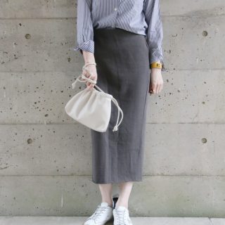 プリーツタイプのスカートでスニーカーで動きやすくスタイリングしました。
