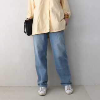 選んだシャツはコーデュロイ素材なので季節感が感じられ、冬でも1枚で着ていただけます。ラフで抜け感たっぷりのシャツは冬でも見逃せません。可愛いくすみピンクを使ってワイドボトムに迷わずONしました。