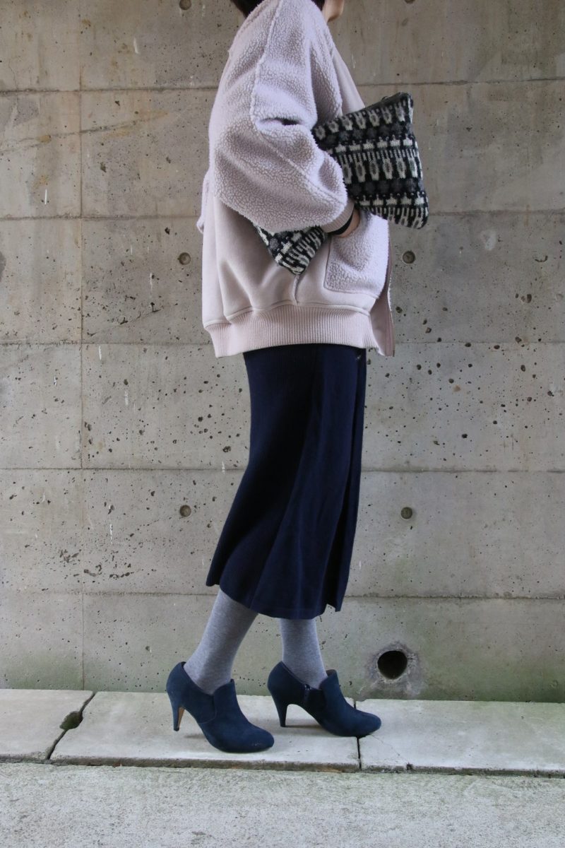 今回合わせたブルゾンはボアを使ったフェイクムートンでリバーシブル。オーバーサイズなので他にもパンツ、今季はワンピやスカートにも合わせて使いたいアイテムです。選んだブルゾンはハードな印象もないため相手を選びにくく色々活用できます。大人のブルゾンコーデに仕上げました。