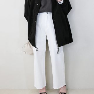 くすみピンクのバンツは裾にスリットが入っているものを選びました。スリムパンツよりバランスがとりやすくこなれた雰囲気に仕上がります。曖昧カラー同時の組み合わせで甘すぎないピンクコーディネートになりました。