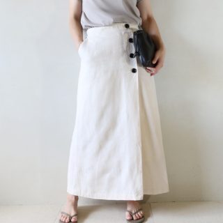 シンプルTシャツをチョイスしました。少し濃いめのベージュで引き締め、カゴバックのナチュラルベージュをプラスしてまとまりのよいカラーでコーディネートしました。