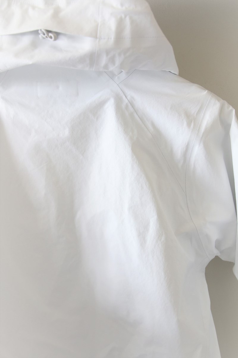 H2Noパフォーマンス・スタンダードを採用した、3層構造の防水性、透湿性シェル素材は最高レベルの快適さと機能性、持続する防水性を提供。フェアトレード・サーティファイドの縫製を採用し、ニ通りの方法で調整可能なフードはフォーム入りのつばを備え、使用しないときはシンプルなコードとフックで留めることができます。首にあたる部分にはマイクロフリースの裏地を施し、快適な肌触りを提供しながら防水性、透湿性バリヤーで保護。共布のテープ留め付き袖口とドローコードで調節可能な裾が雨の浸入も遮断できます。
