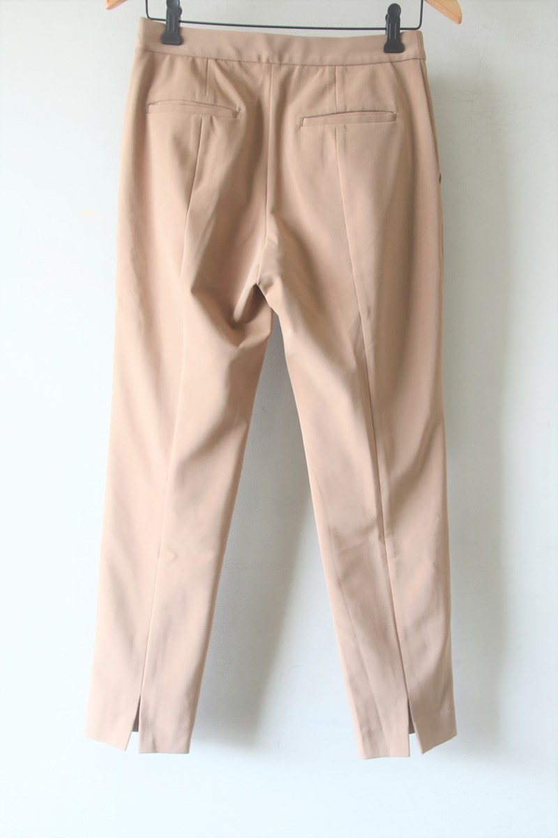 滑らかな肌触りとクリーンな表面感が特徴のナイロン素材を使用したパンツ。ほど良くレッグラインに沿う美しいシルエットながら、優れた伸縮性で穿き心地の良さも両立させました。足首の見えるやや短めの丈感とバックに入れたスリットが軽やかな抜け感をプラス。サイドファスナーのデザインでウエストまわりはすっきりとしており、タックイン・アウトどちらの着こなしもバランス良く決まります。ワードローブに一つあると、オンオフ問わず幅広いスタイリングで活躍してくれる万能なアイテム。