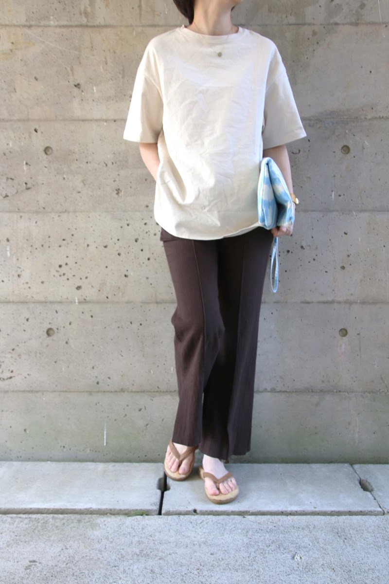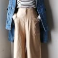 また、ボトム選びも重要です。ボトムのデザインやシルエットで全体の印象がガラリと変わります。今回はミラオーウェンのピンタックプレスでデイリーに見えつつ大人っぽさを印象づけるスタイリングにしました。フレアパンツは足長効果もあり、おしゃれ見えするので今季こそチャレンジしたいアイテムです。