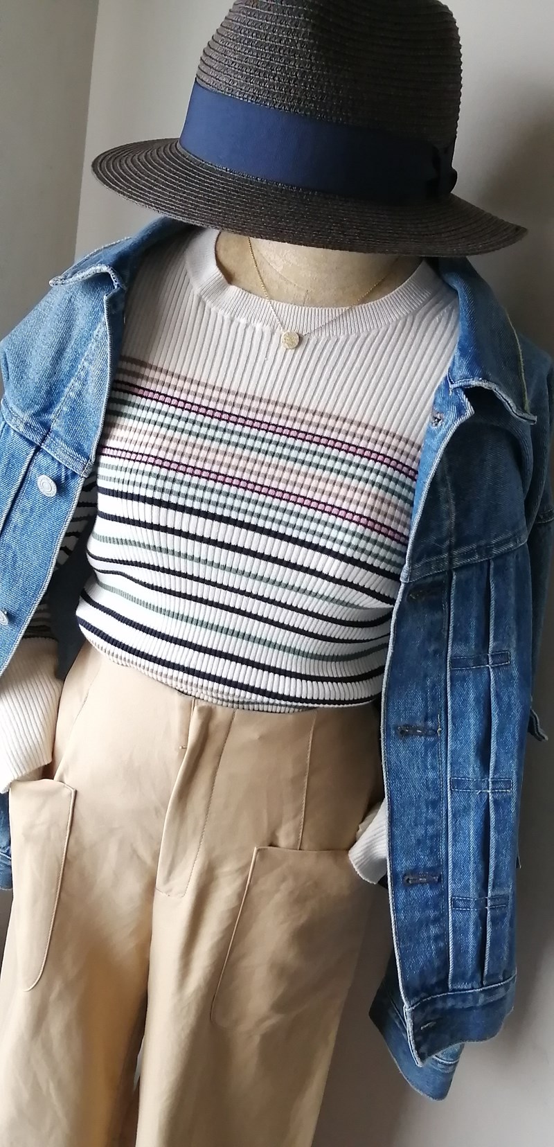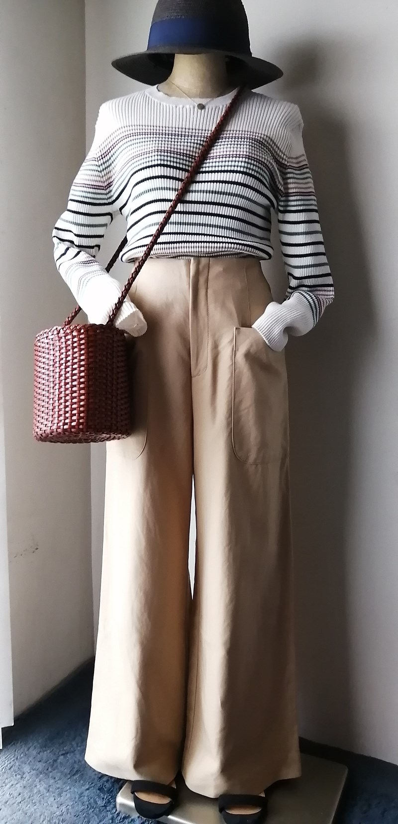 マルチボーダーニット+ビックポケットワイドパンツ IENA(2点セット価格¥7950)