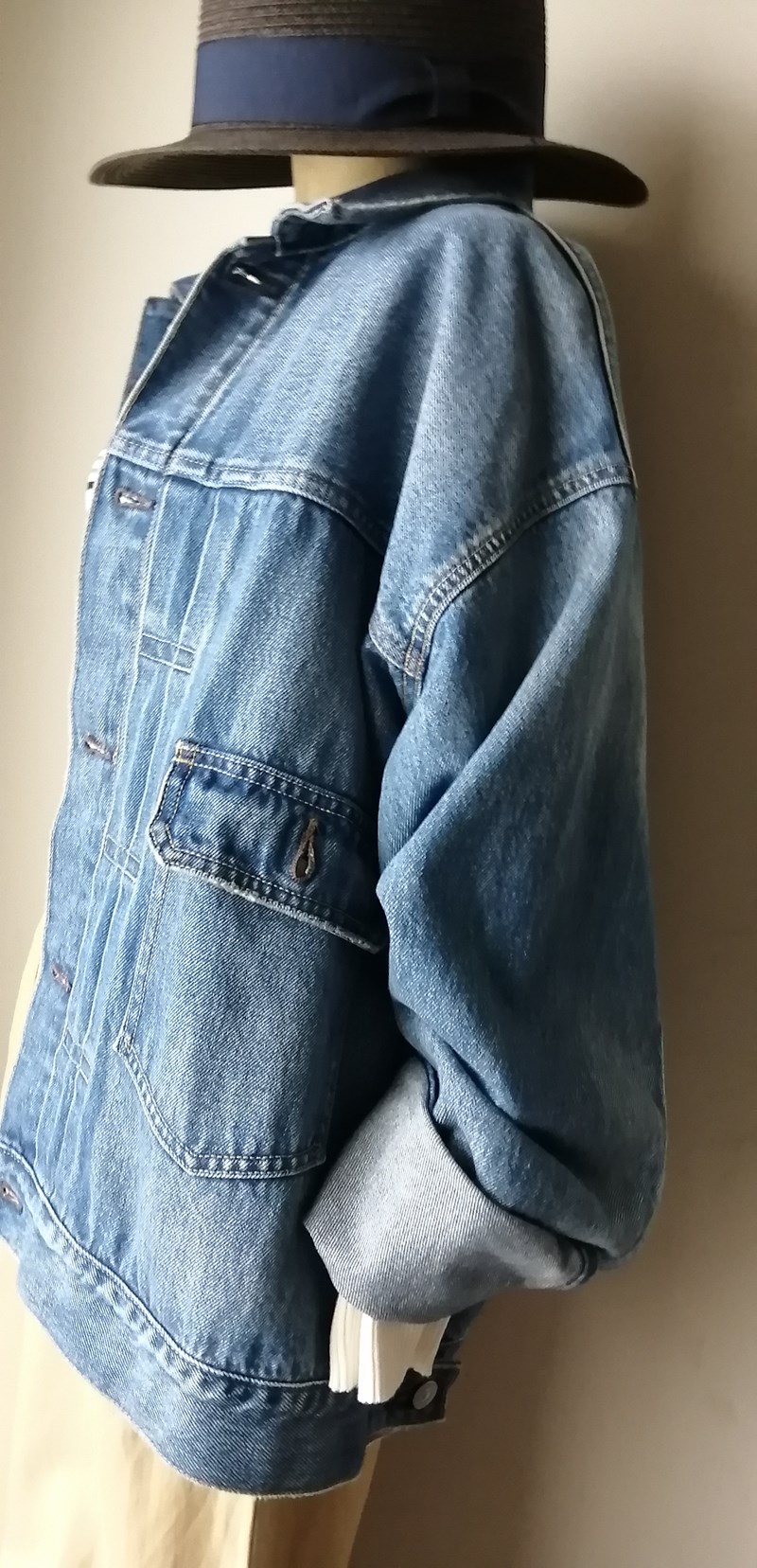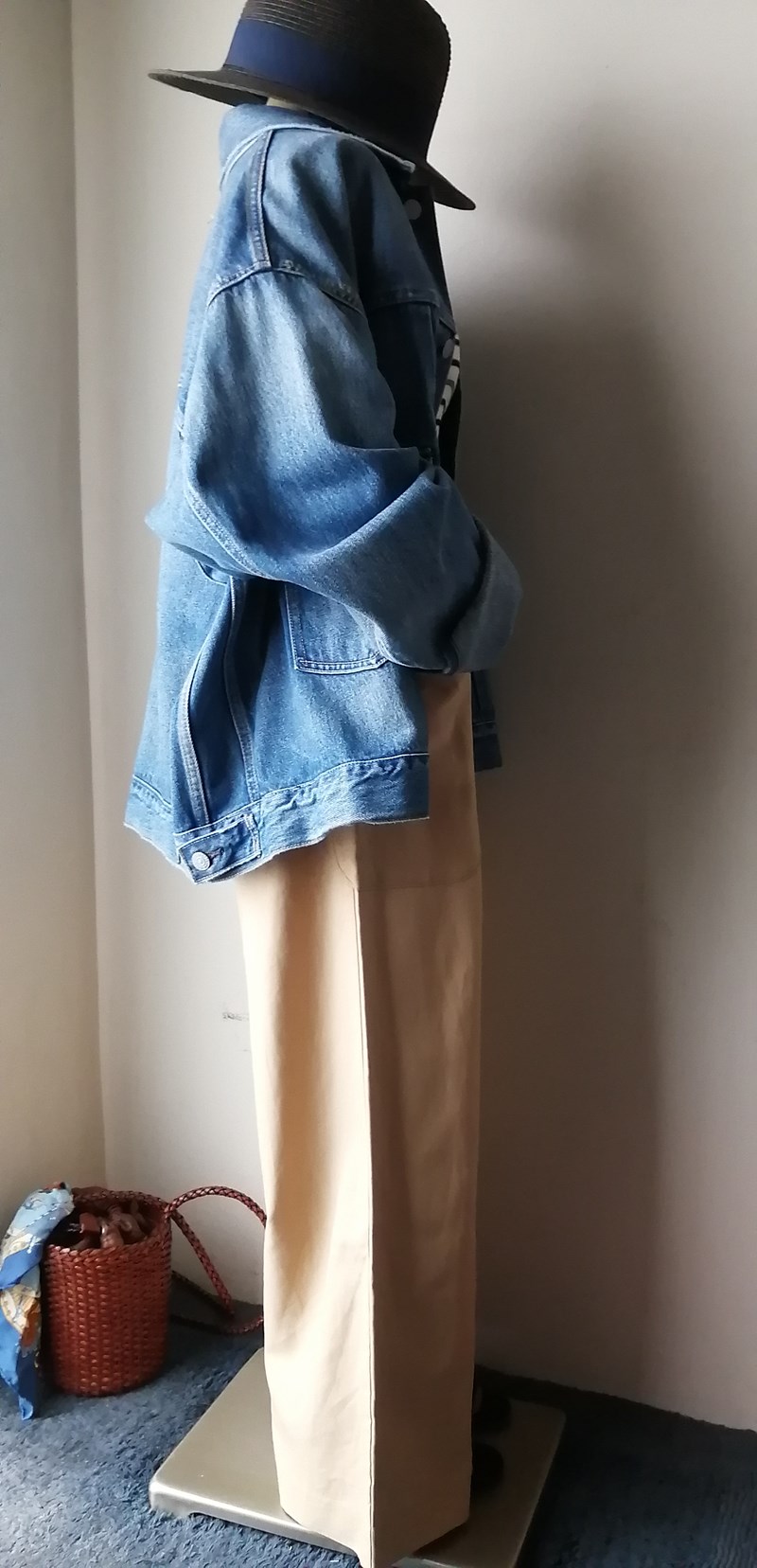 程よいオーバーサイズ感と肩の落ち感は男性・女性問わず着ていただけるデニムジャケット。ワイドなシルエットもレディライクなコーディネートに相性よく、ラフに仕上がります。
