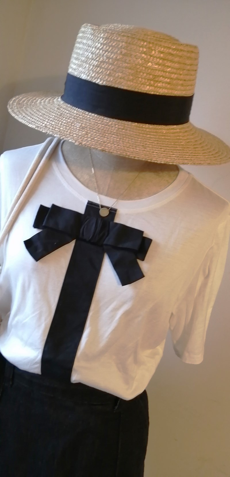 リボンカットソー×デニムスカートコーデ(sold out)