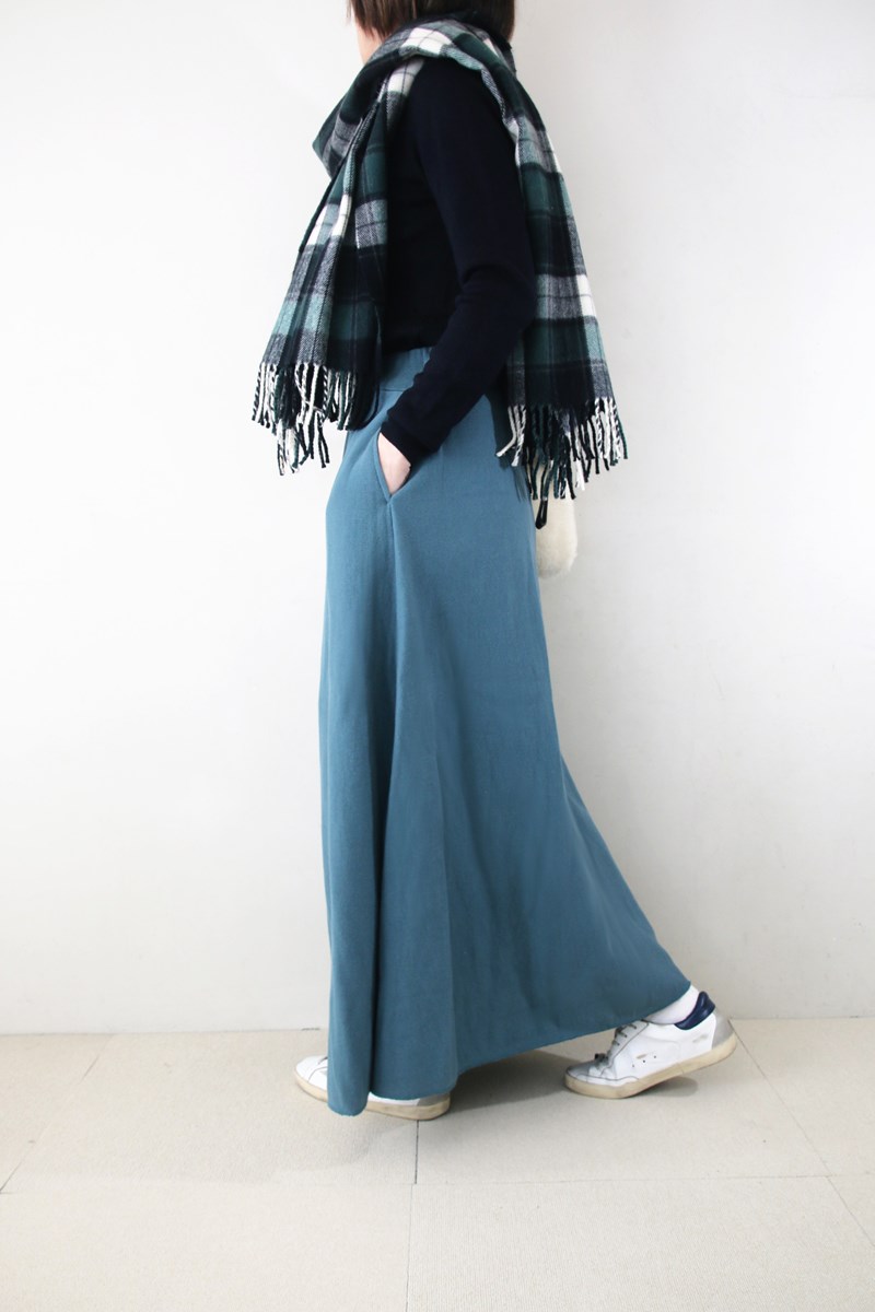 裏毛のスウェット素材をたっぷりと使用したロングスカート。適度な重量感のある生地は着心地抜群、ご自宅でのイージーケアが可能で洗っても縮みにくいのが特徴です。ベージュ、グリーンの2色展開で、アダムエロペが別注で作成したオリジナルのこだわりカラーです。
