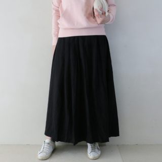 いつものパンツスタイルにボリュームスリーブのニットを使うことできちんと感がアップ。着崩し過ぎない雰囲気にスタイリングできます。伸縮性が良い肉厚ニットで体のラインが気にならず、品よく見えるクルーネックで大人女性にもマッチするオススメニット。