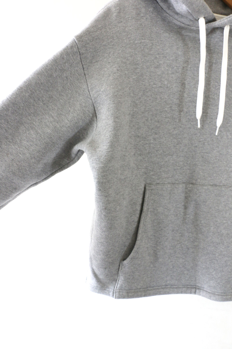 トップスは裏起毛の肉厚フーディ。ふっくらとボリュームあるフードが可愛い1枚です。