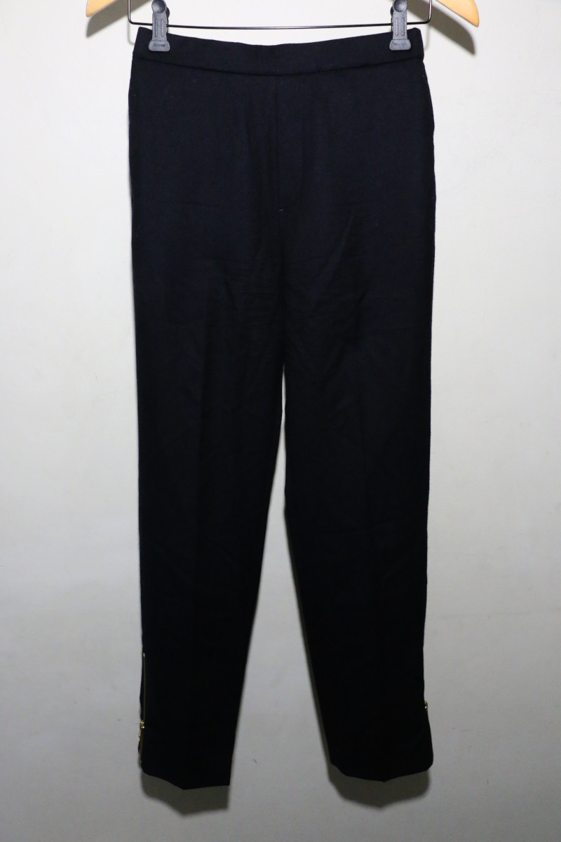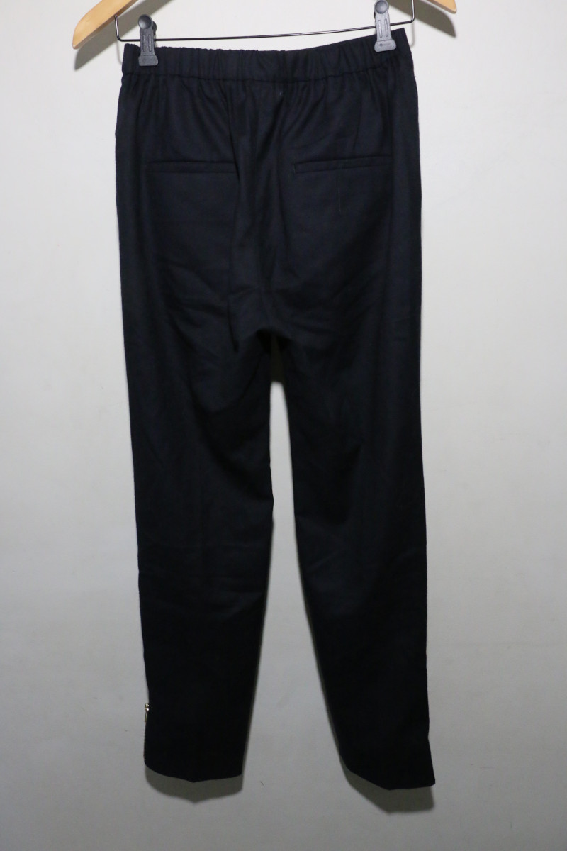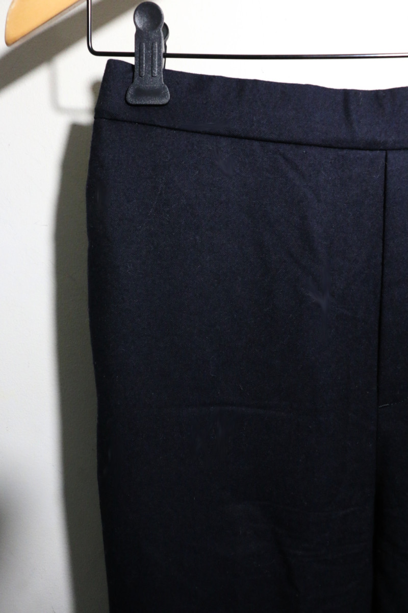 足を細く見せスタイルアップが叶う、EVERYDAYのNEWベーシックパンツ!イタリアの老舗スーツ地メーカーCANONICOの目の詰まったきれいなフラノ素材を使用。少し起毛した生地感で素朴な印象のものも多いフラノですが、CANONICOならではの上品な光沢感と美しい色味で高級感のある風合いです。細身のシルエットで、下半身を華奢に見せてくれる嬉しいアイテム。外側に配されたジップで、冬に履きたいSUIKOKEのサボやスニーカーとバランスのとりやすいデザインです