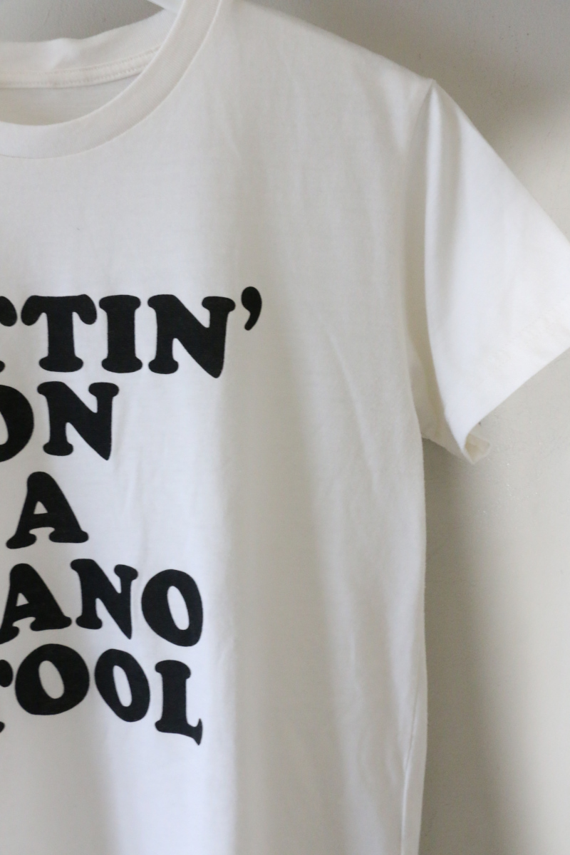 無地よりも意外と使いやすく、一着あると手放せなくなるアイテム。幼くなりがちなプリントはブラックにし、落ち着きを持たせました。ご自宅で洗濯できるのもうれしいポイント。デイリー使いしたい1枚です!Vネックニットやカーディガンに入れてチラ見せしても◎ジャストサイズで着られるので、これからの季節のマストアイテムです!