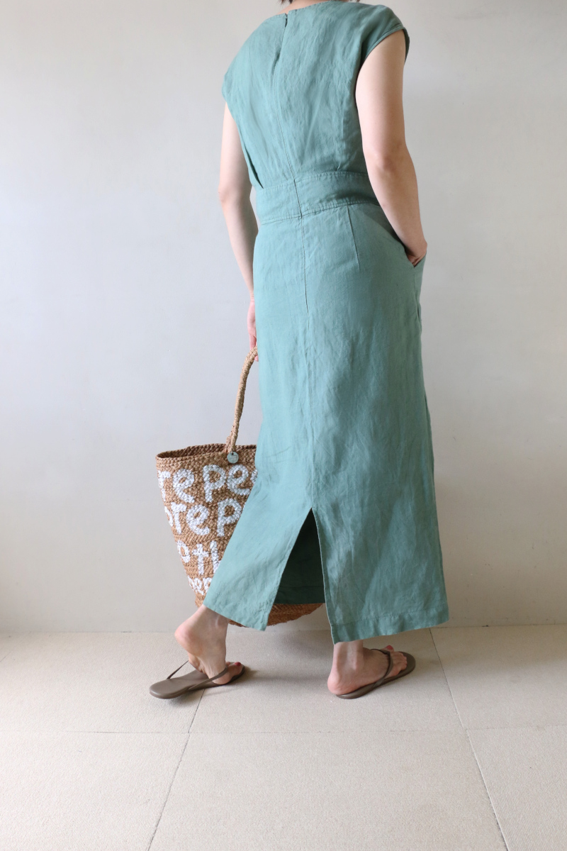 一見シンプルなフレンチ袖のリネンワンピースですが、大人の女性の願いを叶えるポイントがいっぱい。ウエスト周りはスッキリ見せて、裾に向かってやや広がるシルエットなのでヒップラインは気になりません。フロントのボタンもポイントになり、平坦に見えずメリハリのある表情。猛暑日に着れるドライなリネン。着心地と美しさをすべて叶えた一着に。