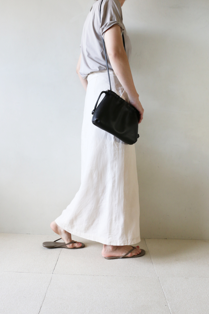Tシャツを使ったスカートのリラックスコーデ。トップスはカットソーがメインの季節。少ないアイテムを着回す夏だから配色や着こなしにちょっとした工夫をプラス。