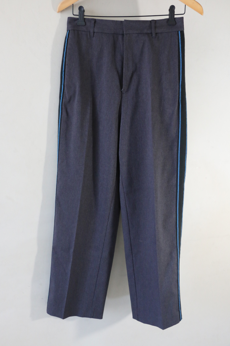 スポーティーなムードをプラス。サイドラインが目を引くワイドパンツ。■デザインオリジナルで作製した両脇のラインテープが目を引くスラックス。ややハイウエストのストレートシルエットにタックなしですっきりと仕上げ、カジュアル過ぎずに大人の方でもはきやすいデザイン。シンプルな中にもさり気ない個性が光るルックスは、ワードローブの新定番に加えたくなる一着です。ブルーのラインがアクセントを添えるダークグレーに、ワントーンに馴染むブラウンの2色をご用意しました。■素材ウール調のポリエステル素材を使用。適度なハリと落ち感があり、品のある着こなしを後押ししてくれます。デイリーに嬉しい、手洗い可能な利便性の高さも魅力です。■コーディネートオーバーサイズのジャケットでモードに決めるのはもちろん、スウェットやプリントTシャツなどラフに合わせて、ミックスカジュアルスタイルを楽しむのもおすすめ。主張が強すぎないデザインは、柄ものやカラーニットなどエッジの効いたアイテムとのコーデも様になります。