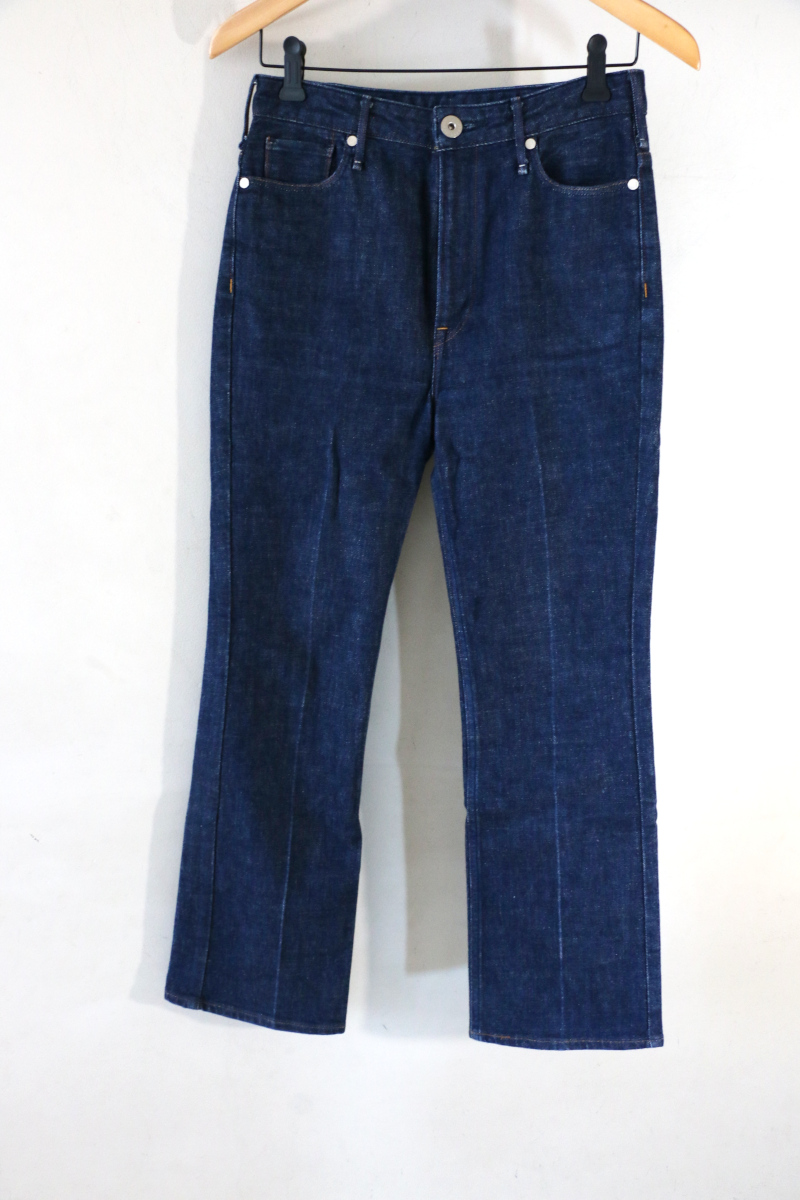 大人が求めるスマートなルックスが叶うカラー「BLUE RINSE」インラインモデルTHE BIRKINをベースに、ウエストをカーブベルトに変更することで、腰回りのフィット感を上げウエストをすっきり細見えにセンタープレスで仕上げた特別モデルです。ヨコ糸にストレッチ糸を使用し、糸の打ち込みを甘く織り上げコンフォートなストレッチ性と風合いも魅力。緩やかなフレアラインにセンタープレスのきれいめなディテールで、どんなシーンでも大人カジュアルに活躍してくれます。