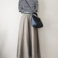 デニムは人気のアッパーハイツデニムを選びました。センタープレスが足長効果を発揮し、ヒップと腿がすっきりとし、ややフレア気味の裾幅が冬のオーバーニットにもバランスよくコーデできます。ざっくりニットなどビッグトップスが主流のスタイリングに欠かせない1本です。