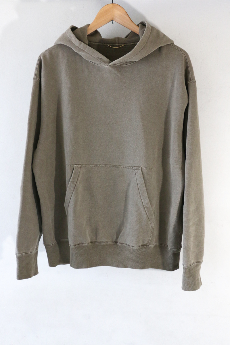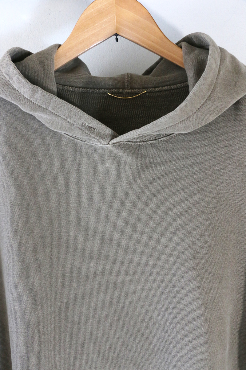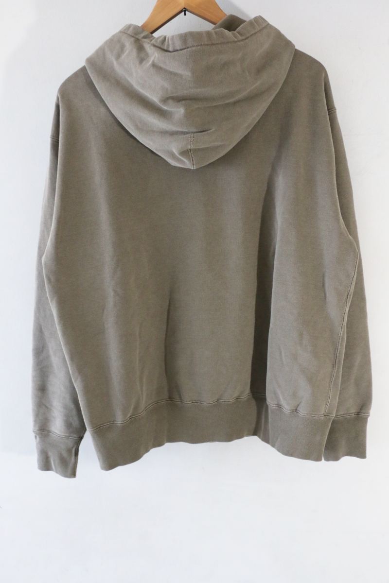 毎日着たいなと思わせてくれる宝物(=treasure)のフーディ。サイズ感、色、全てに雰囲気があり、大人の女性が着たくなるフーディを作りました。アメリカのオーガニックコットンの落ち綿を使用。この落ち綿を再紡績し、糸を完成させたエコロジーな生地です。通常よりじっくりと時間を掛けて紡ぎ出す工程により、凹凸のある表情豊かな素材に。目の詰まった硬い裏毛をナテュラルストーンウォッシュで長時間洗い込み着古した表情に仕上げました。