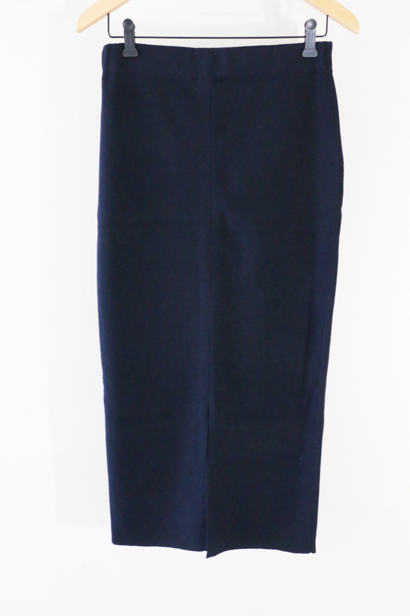これからの時期に大活躍の総針タイトスカート。ウール混素材で程よく暖かみのある素材感が、シーズンムードを高めてくれる一枚です。タイトシルエットながらも程よく厚みのある編地なので、身体のラインを拾いすぎず安心感のある穿き心地が魅力。腰回りはほんのりフィットさせ、裾に向かって自然に細くすることでスタイルアップ見えするシルエットに拘りました。