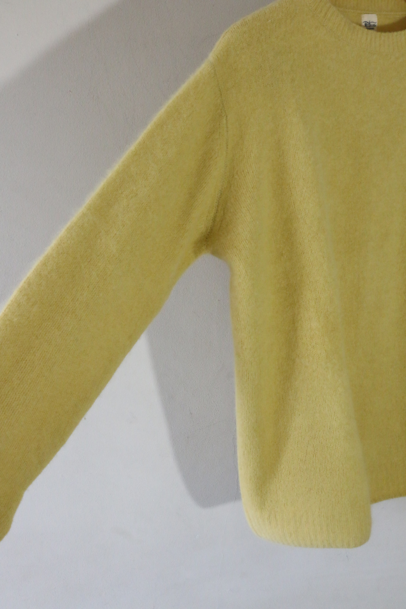 ほんのりと黄味を帯びた“エッグカラー”が視線を奪う、ロンハーマンのふわふわヘアリーニット。柔らかな毛足が生むリュクスな表情と、ゆるっとしながらもだらしなく見えない絶妙なシルエットが、大人にちょうどいい品の良さを演出します。クルーネックの首元は上品で、アクセサリーを添えても素敵。
