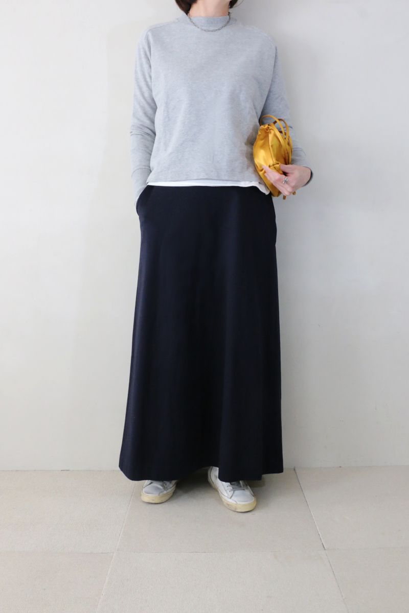 合わせたリトルフレアカットスカートは、控えめに広がるシルエットが動きにやわらかさを添えるデザイン。揺れ感が美しく、軽やかな生地感で夏まで頼れる一枚。長いシーズン活躍してくれます。