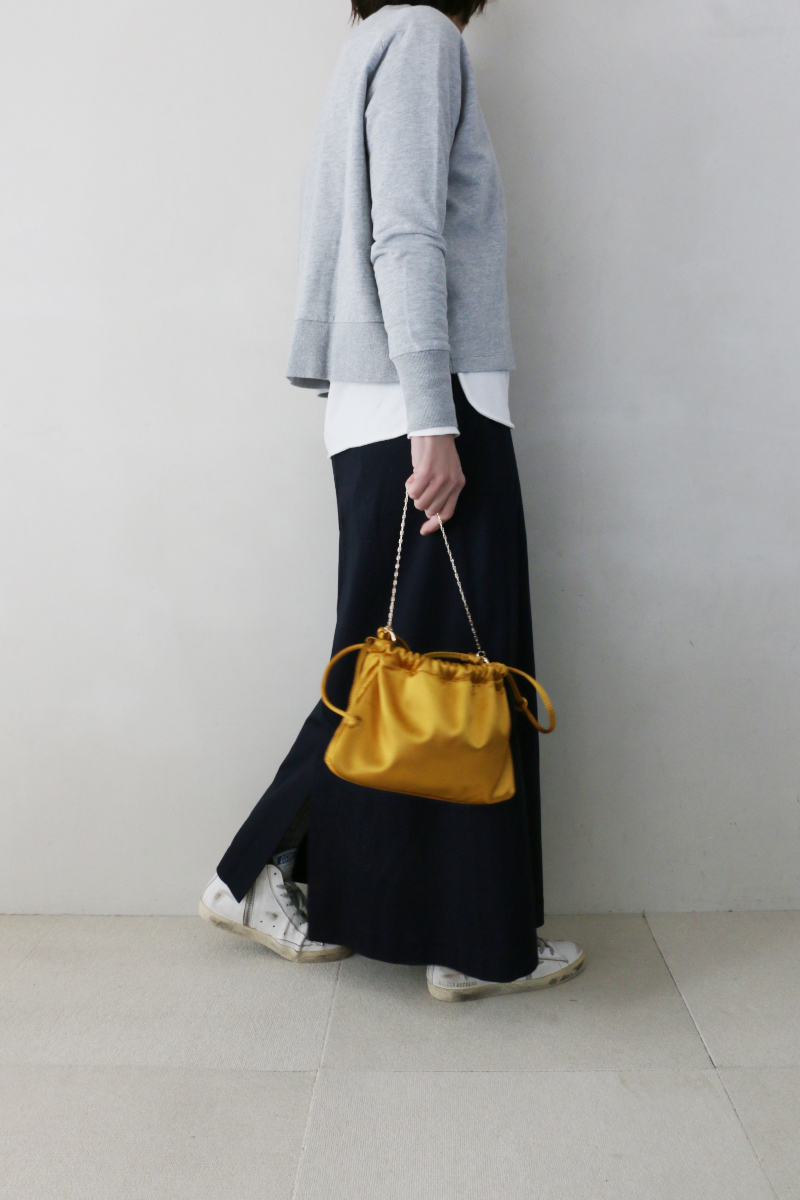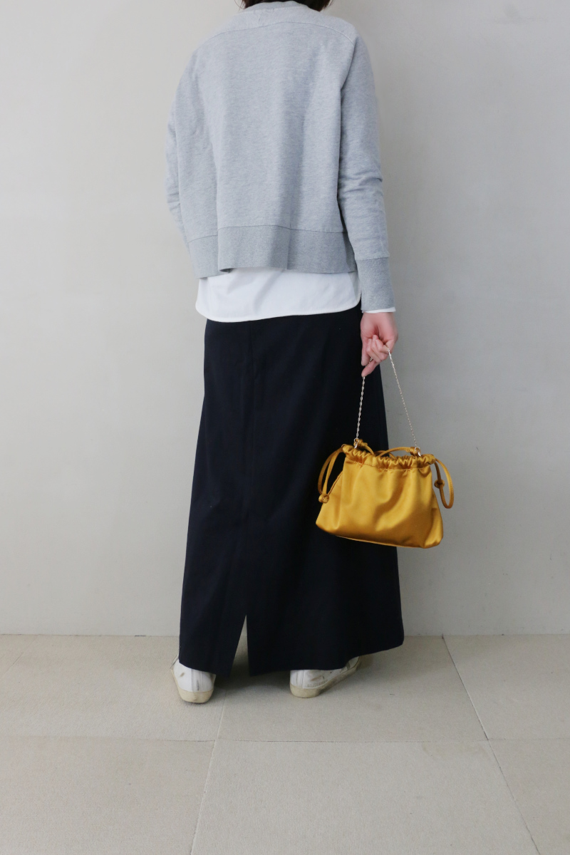 無理のない組み合わせだからこそ、シルエットの良さが引き立つスタイリング。日常に取り入れやすく、自然体のまま整った印象に仕上がります。