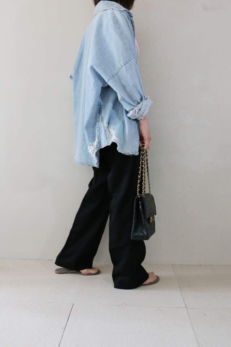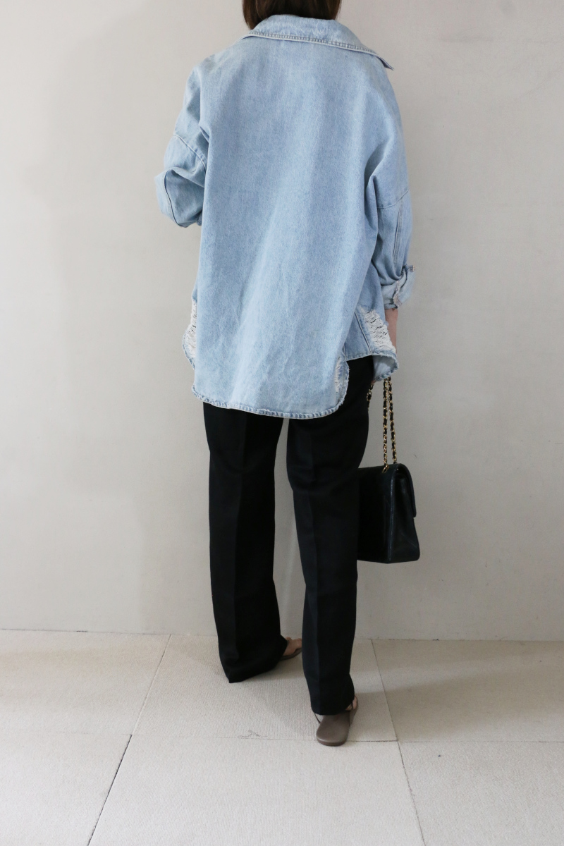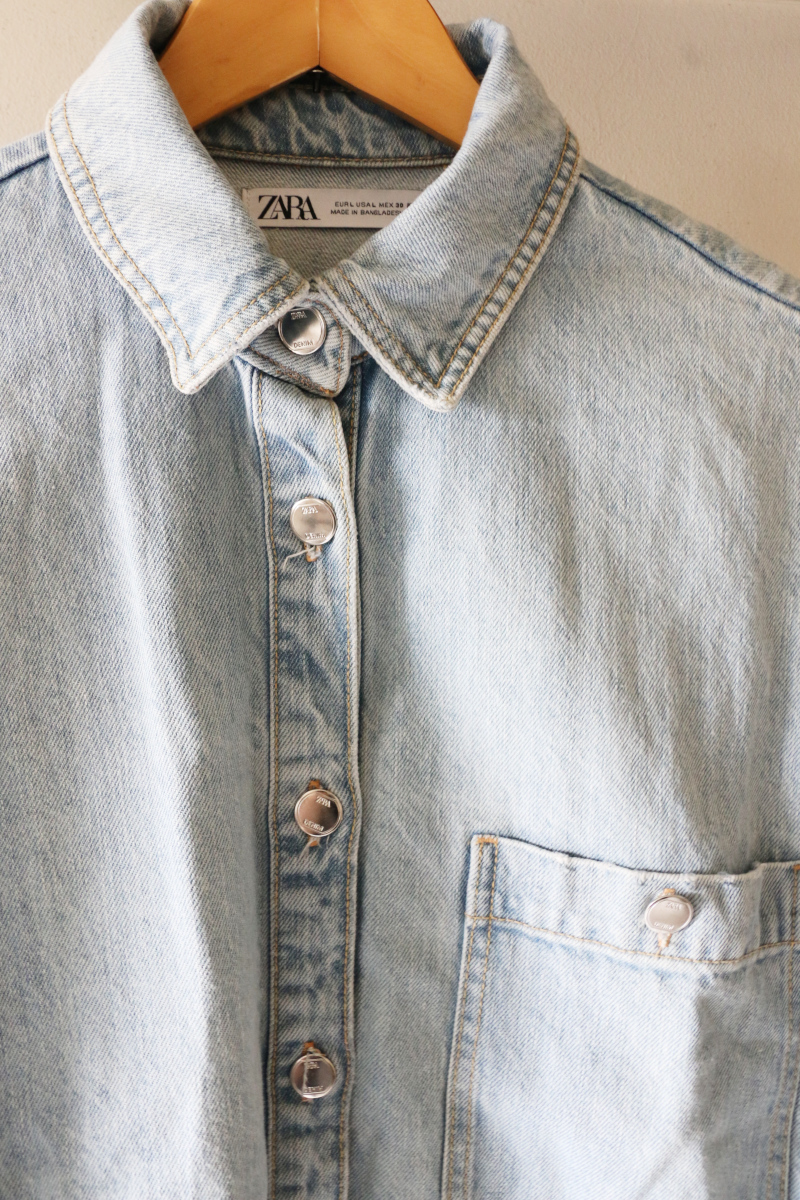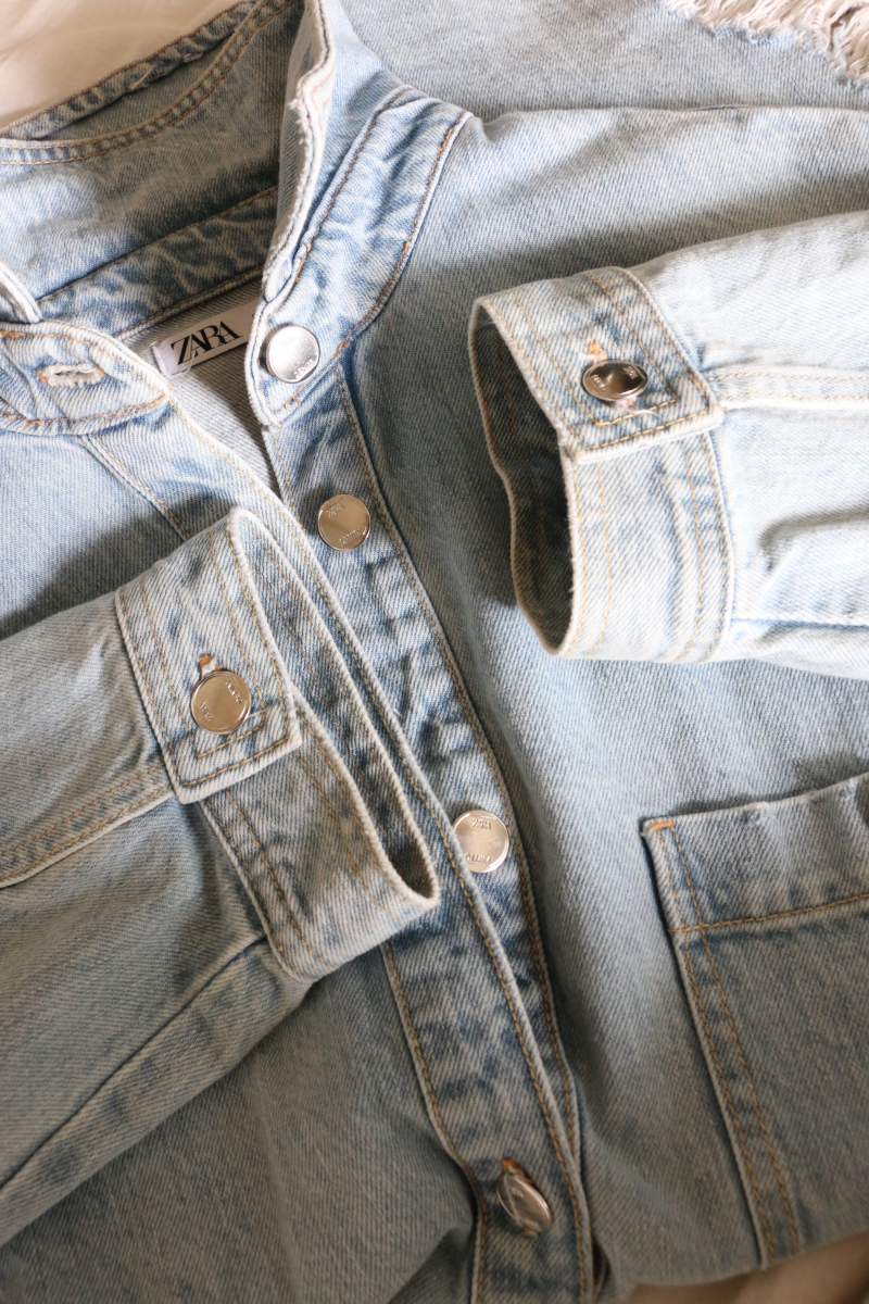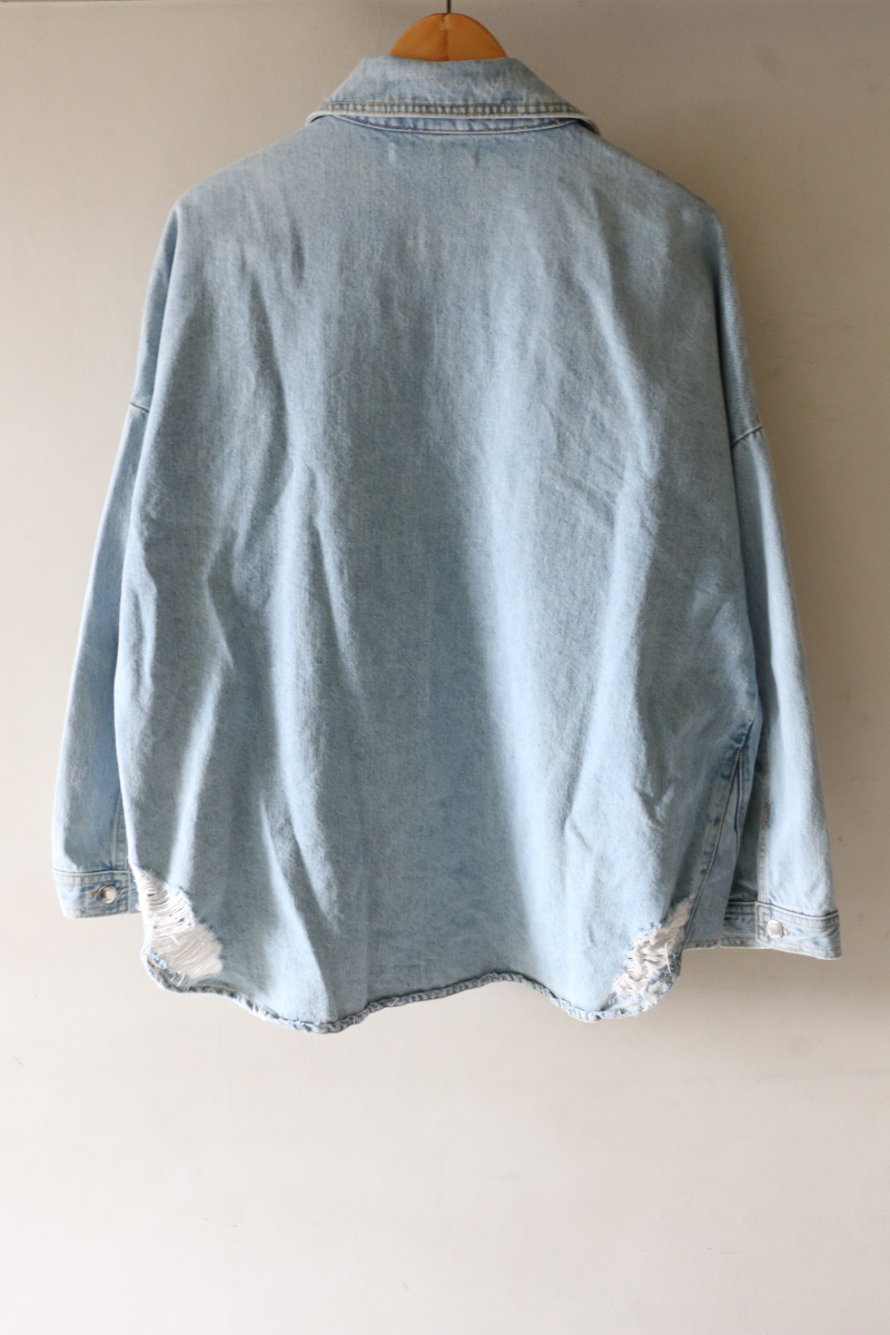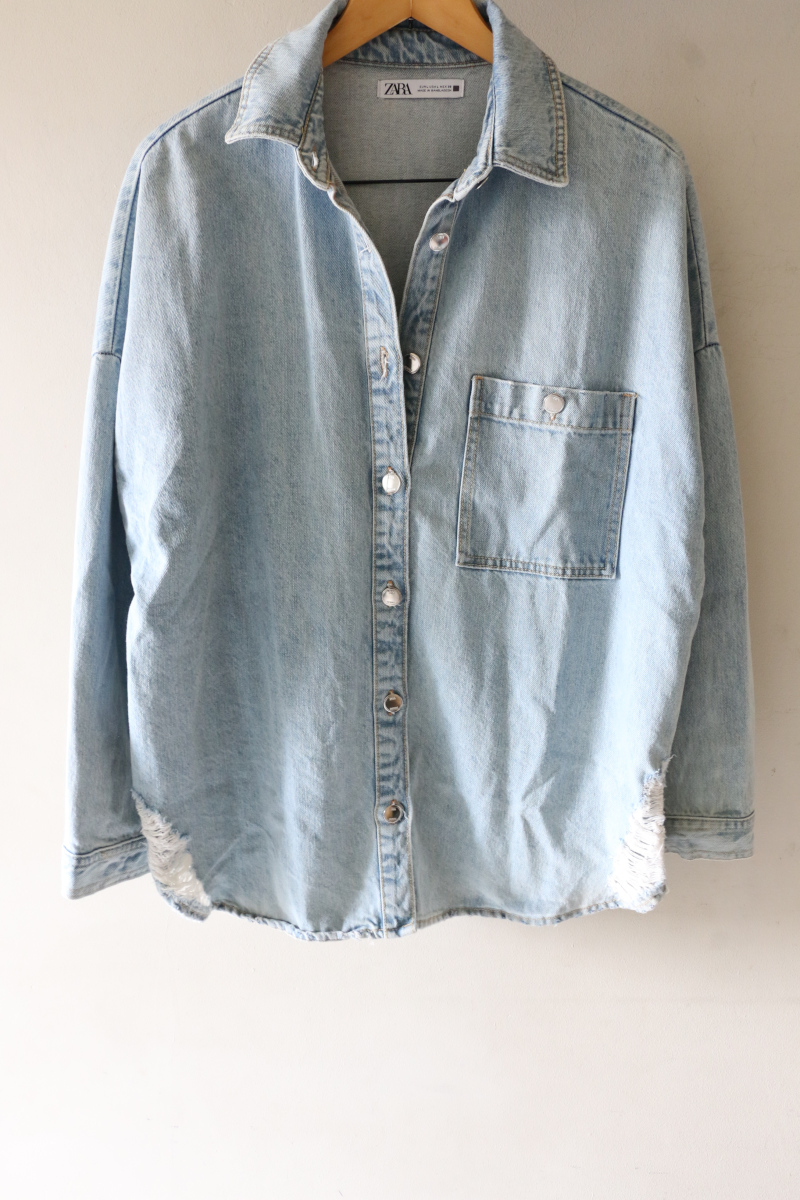 ZARAのデニムコレクションの中でも定番的に人気のあるダメージ加工のデニムシャツジャケットです。