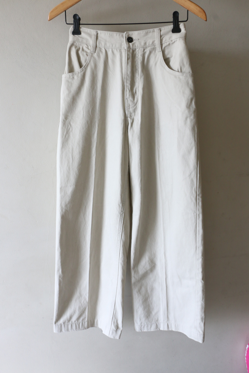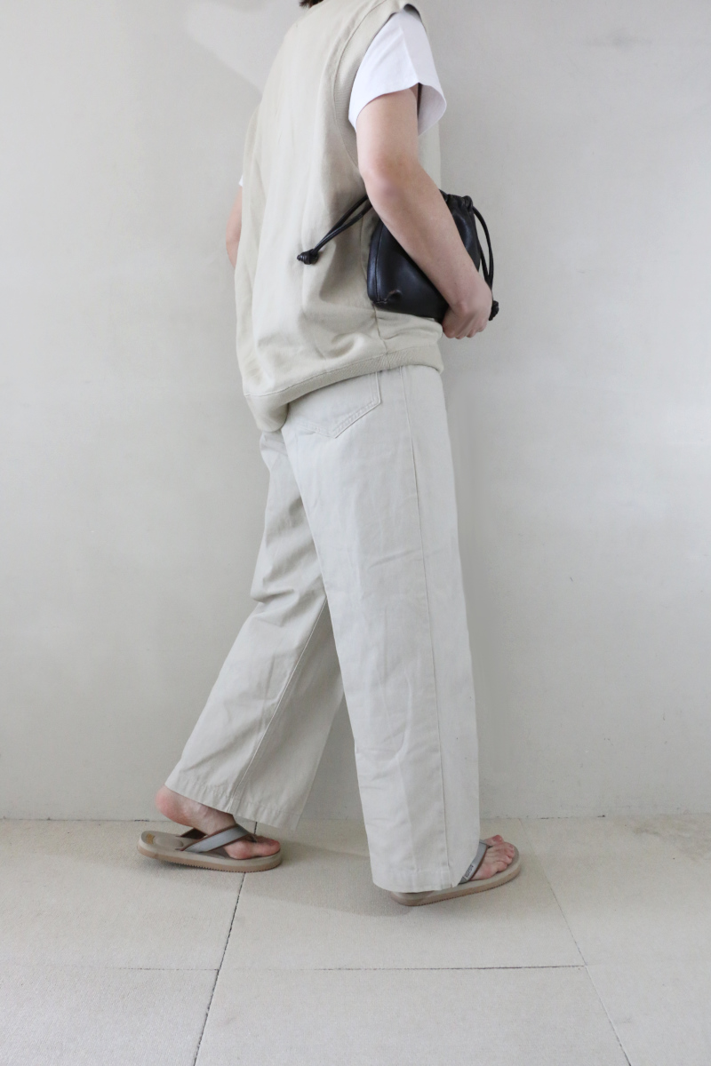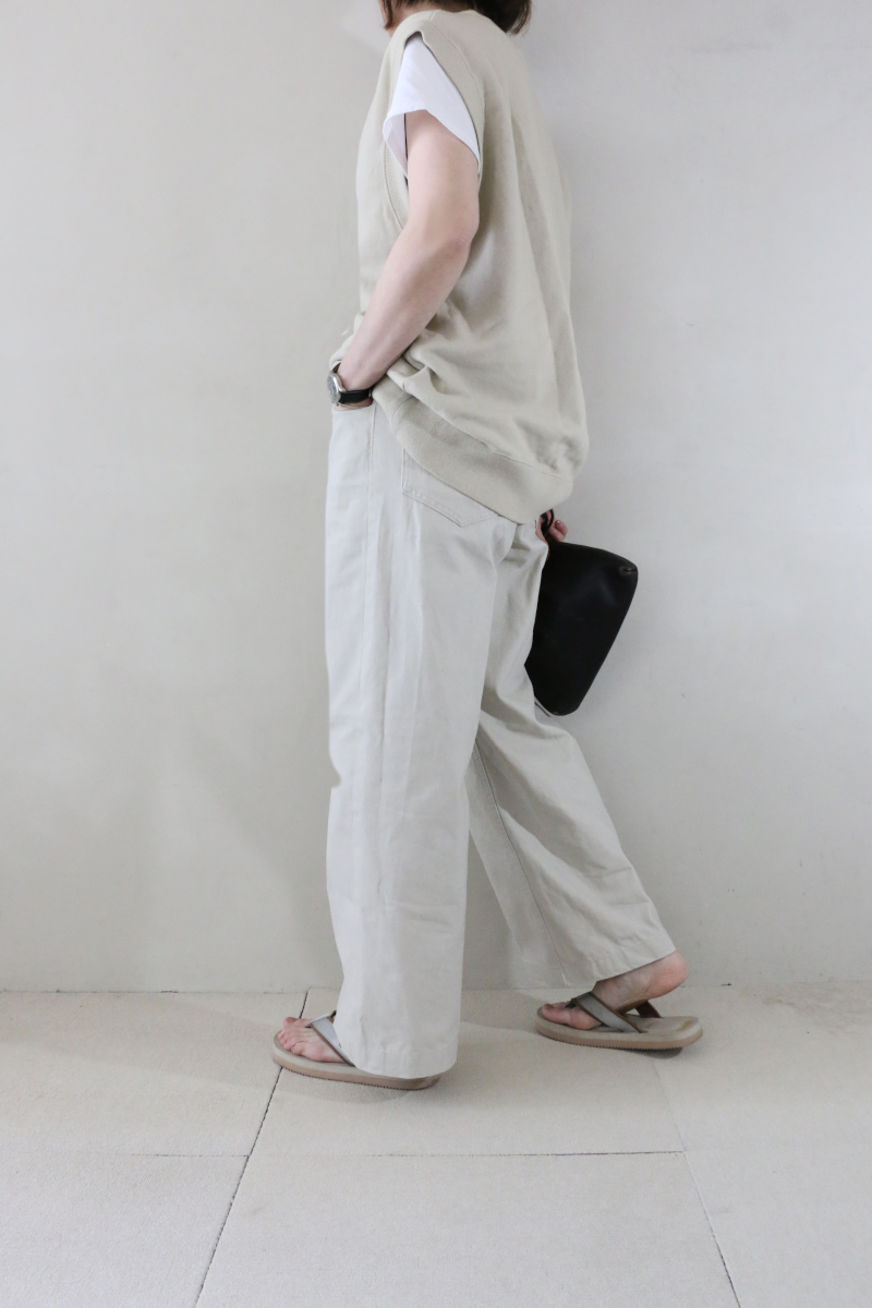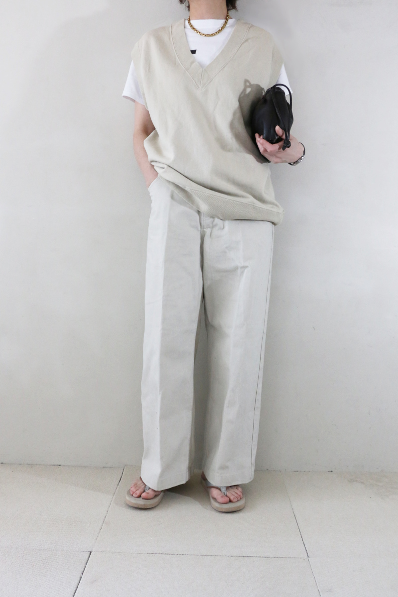 カジュアルな素材感ながら、センタープレス入りでクリーンな印象に仕上げました。
