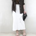 落ち着いた中にもやわらかな抜けを軽やかなシアーカーディガンとスカートの組み合わせで。胸ポケットのディテールがさりげないアクセントとなるグレーのカーディガン。ほんのり透ける質感は重たいイメージになりません。
