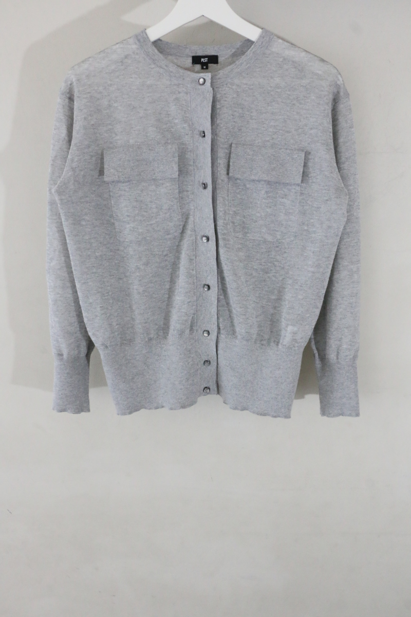 デザイン- シアー素材が女性らしさを演出。冷房対策にもおすすめのアイテム。カーディガンとしてはもちろん、前ボタンを閉じてプルオーバーとしても着用できる。胸ポケットは装いのアクセントになりつつ、目線を上に集めることでスタイルアップの効果に期待。