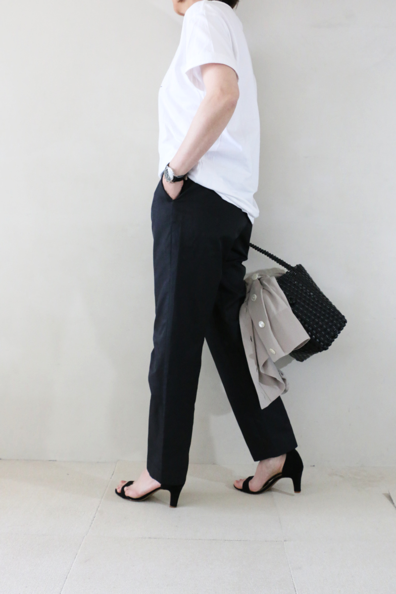 ミラオーウェンのセットアップボトムは、すっきりとしたシルエットで全体を引き締める役割に。単品でも使いやすく、トップスを選ばず着回しの幅が広がる一本。動きやすさときちんと感をほどよく両立します。