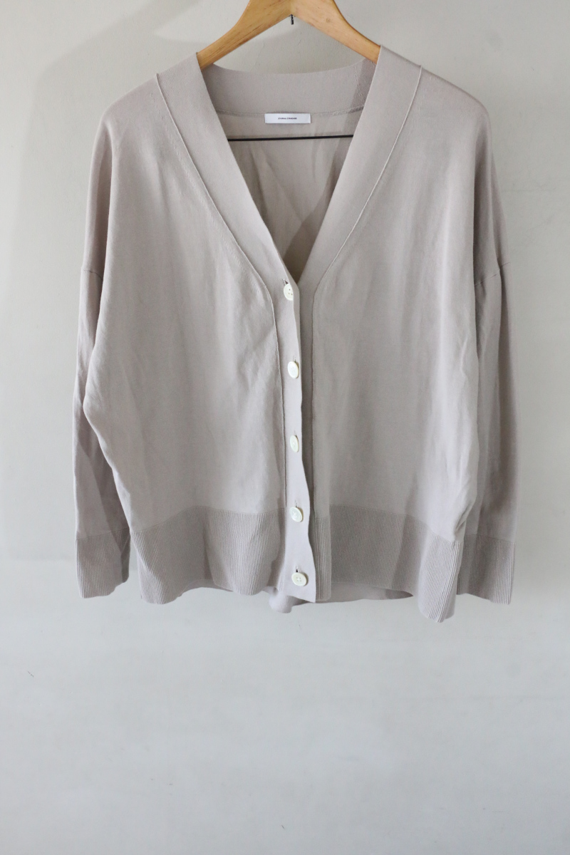 ドライタッチで清涼感あるハイゲージコットンカーディガン。薄手ながら透け感が少なく、さらっとした肌触りが魅力的。これからのシーズンの日除けや冷房対策に活躍するのはもちろん、シーズン問わずに羽織りやすい素材感です。ヒップラインが隠れるやや長めの着丈とゆったりしたシルエットでリラックス感もあるバランスにしています。前立ての太さや裾リブの幅など、上品ながらもこだわりもあるディテールがデザインポイントになって着映えも叶う万能なアイテムです。
