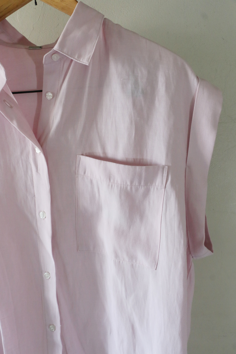 やわらかなピンクが印象的なポケットデザインシャツ。程よく力の抜けたシルエットに、袖のロールアップが軽やかさを添え、春夏らしい空気感をつくります。マシーンウォッシャブル仕様で日常使いしやすく、さらっと一枚で着ても、羽織りとしても取り入れやすい一着です。