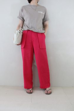 夏主役のTシャツを今っぽく着こなすキレイめパンツ。定番カラーも良いですが、トレンド継続中のパッと華やかなカラーパンツでデイリーコーデを更新。ややゆるっと穿けるルーズなシルエットがリラクシー。立体ポケットがアクセント。ひと癖あるデザインで都会