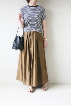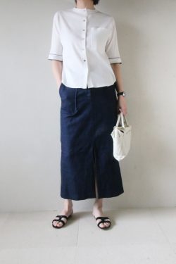 オーバーサイズがトレンドの今、メンズをボーダーレスに上手に使う人が多くなりました。ミニマムな襟ぐりは大人女性を品良く今っぽい着こなしに導きます。デザイン性や色の使い方などレディースではなかなかお目にかかれない仕上がりはハンサムママ世代にドン