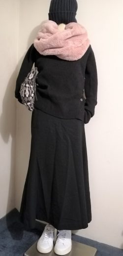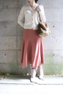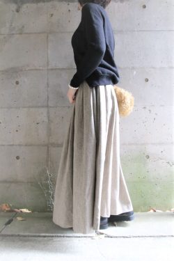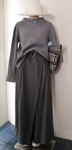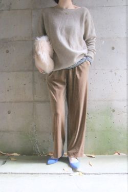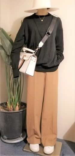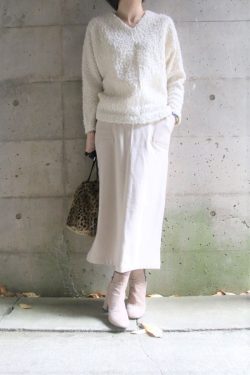 艶ありのハイゲージニットをワイドパンツでコーデしました。1枚なのにクルーネックとVニットを重ねたように見えるデザインが素敵なニットです。しっかりした素材のワイドパンツは大人見えをより一層バックアップしてくれます。ハイゲージニットNEU JO