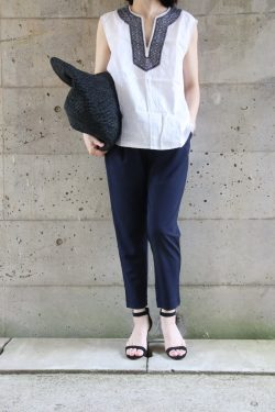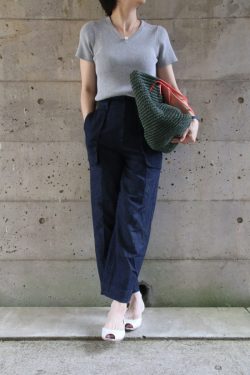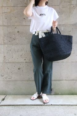 風を感じるオーバーシルエットは真夏についつい頼ってしまう個人的にも大好きなアイテムです。フレアタイプならボトムは細身シルエットからワイドまで、今っぽく着こなすことができます。隠したいヒップもカバーしてくれるバックに長さがあるブラウスなので細