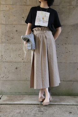 TシャツはロゴTとフォトプリントTをおさえておけば今季も一安心。レディライクなボトムをこなれたキレイめカジュアルにシフトするのに一役買ってくれることでしょう。黒のTシャツは汗ばむ時期になっても頼りになる定番カラー。一方でボトムは優しい色をチ