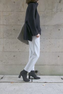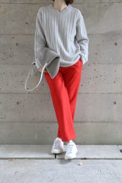 ミニマムなクルーネックのケーブル編みニットはしっかりした肉厚素材を選んで大人カジュアルをクラスアップ。一枚で存在感があり細かいプラスαはいりません。サッとパンツに合わせるだけで今っぽくサマになります。見た目も着心地も暖かいコーデュロイパンツ