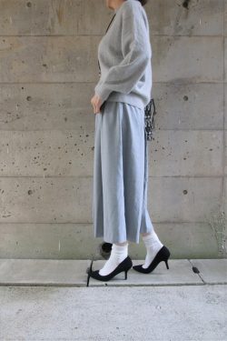 おしゃれ見えが叶う旬のワントーンコーデは1パターンは持っていたいスタイリング。冬に長く愛用できるグレーのシンプルニットを中心に。「無難」なベーシックカラーですが、素材やトーンが幅広く選べるグレーは組み合わせで印象を作れます。抜け感あるスタイ