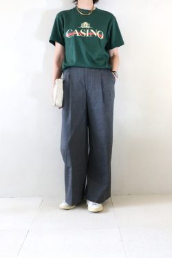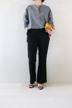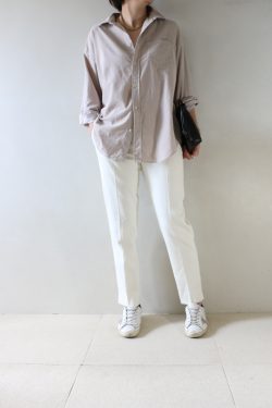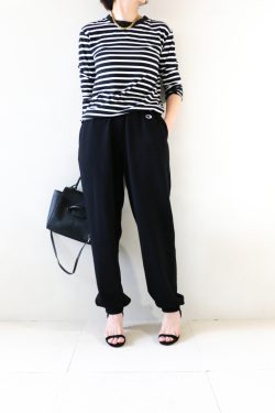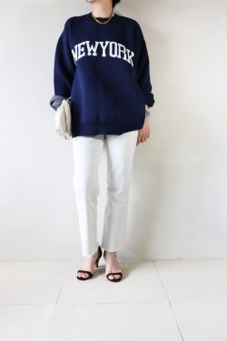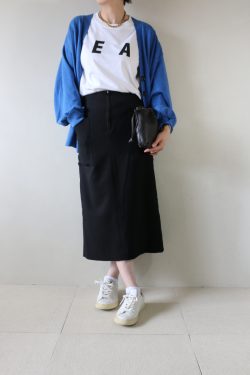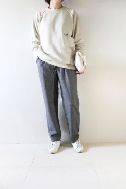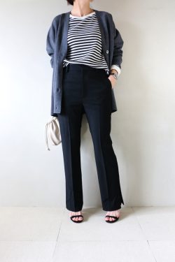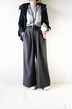上質なウール素材を使用したグリーンレーベルリラクシングのトレンチロングコートは、ほどよい厚みとしなやかな落ち感が魅力。端正なシルエットで大人の品を引き立てながら、ネイビーの深みが季節感を添えます。インナーには白のナイキスウェットを合わせ、胸