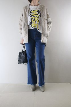 ダンボール素材は大人女性でもキレイめにスタイリングできる人気の素材。カジュアルでも着崩し過ぎない印象が保てます。濁りのないENFOLDらしさが光る「ロイヤルブルー」を使ったより品のあるカジュアル。ベーシックカラーの冬アウターや春アウターに着