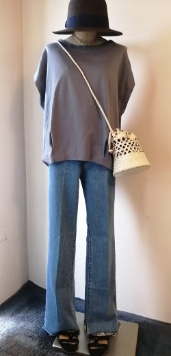 ボーダーニットMUJI お値段付けずパンツにオマケセットいたします。サイズL白黒USED綿80%シルク20%平おきサイズ アーム下 約48.2㎝ 裄丈 約73㎝ 着丈 約63.5㎝ カルゼデニムADAM ET ROPE’(アダムエロペ)サ