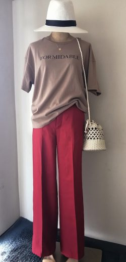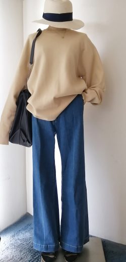 Online Shop オレンジニット×ワイドパンツコーデ(sold out)